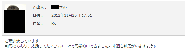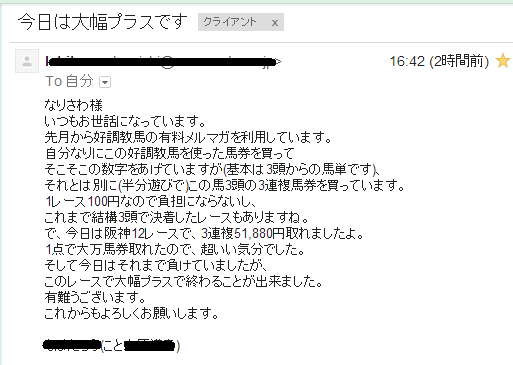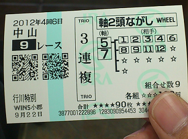 読者の方から馬券の的中報告です。