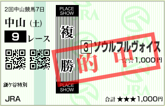 3連複や3連単の馬券購入まで検討する時間がなかったので、単純に複勝のみを購入しました。