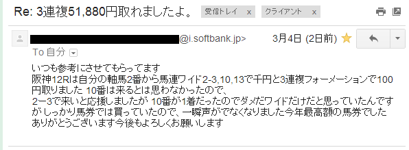 私の場合は、いくつか参考にさせてもらっている競馬メルマガの情報を参考にして、2頭目の軸馬を決めています。